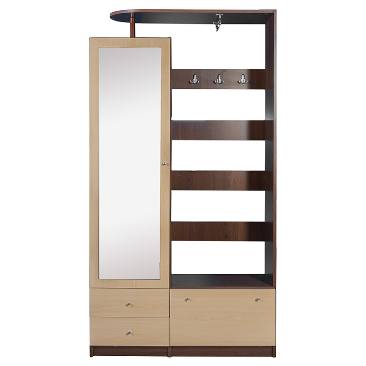 Cuier hol intrare ASDimensiuni de gabarit: L 106.5 x A 41 x H 201 cm.Produsul este realizat din PAL melaminat de 18mm, PFL de 3,2mm, in constructie demontabila. Manerele tragatoare sunt realizate din metal si au un finisaj cromat satinat.Observatii:*Cuierul AS se executa si pe finisajele: stejar sonoma (pret 819 lei), stejar cenusiu (pret 887 lei).Observatii:* Promotia este valabila in reteaua de magazine Mobyland, in limita stocului disponibil.Tip material: PAL melaminat.Finisaj: schoko+par.